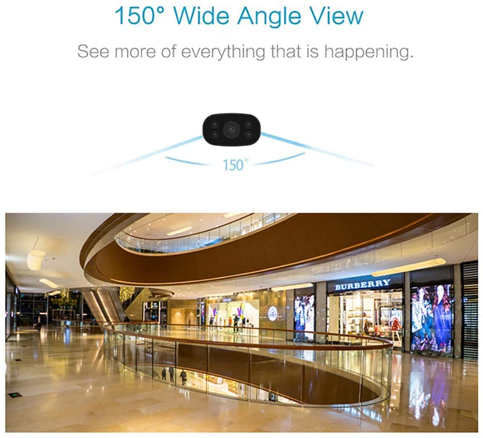 Cette caméra PNZEO est la plus petite caméra grand angle. Grâce à l’objectif grand angle 1080P et 150 degrés, il capture clairement les détails et vous donne un plus grand champ de vision de tout ce qui se passe dans la pièce. Avec son excellente conception structurelle, tant que vous laissez un espace de tête de 1×0,6 pouces (2,6×1,5 cm), il est facile à placer n’importe où, comme à la maison ou au bureau.