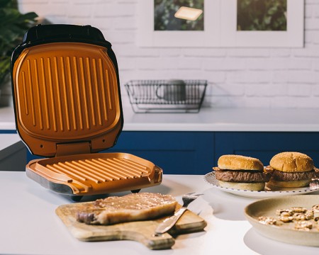 Das Kochen auf dem Grill dauert manchmal lange. Und das Kochen in der Pfanne erfordert viel Öl, was nicht sehr gesund ist. Dann wählen Sie Gotham Grill! Ein neuer Innengrill, der das Essen gleichmäßig kocht und gleichzeitig das Kochfett entfernt. Das Essen muss nicht gewendet werden, sie kochen auf beiden Seiten gleichzeitig! Kochen ist also doppelt so schnell! Ein Steak wird in 10 Minuten gekocht, ein Hamburger in 5 Minuten und ein Panini-Sandwich in 2 Minuten. Die Kochfette werden in einem Auffangbehälter entsorgt, der ein leichteres Garen garantiert. Darüber hinaus ist Gotham Grill dank seiner Antihaft-Keramikbeschichtung sehr pflegeleicht.