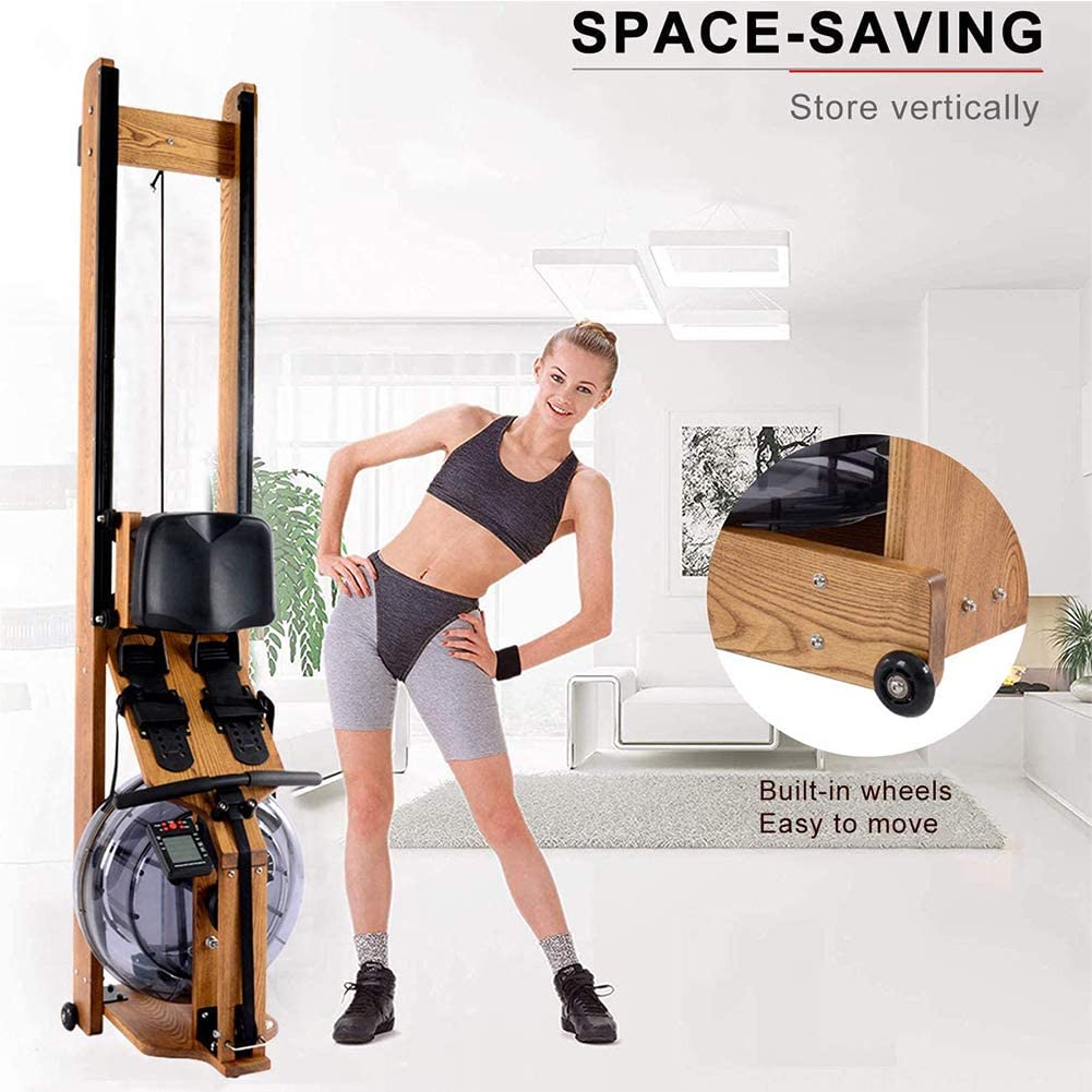 GWSPORT Machine A Rameur A Eau Pliable, Rameur Waterrower Fonction Application, D’équipement De Fitness Aérobie Water Rower Silencieuse en Bois avec Écran LCD pour L’intérieur,Blanc