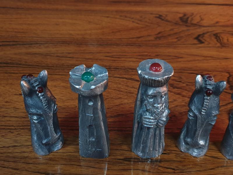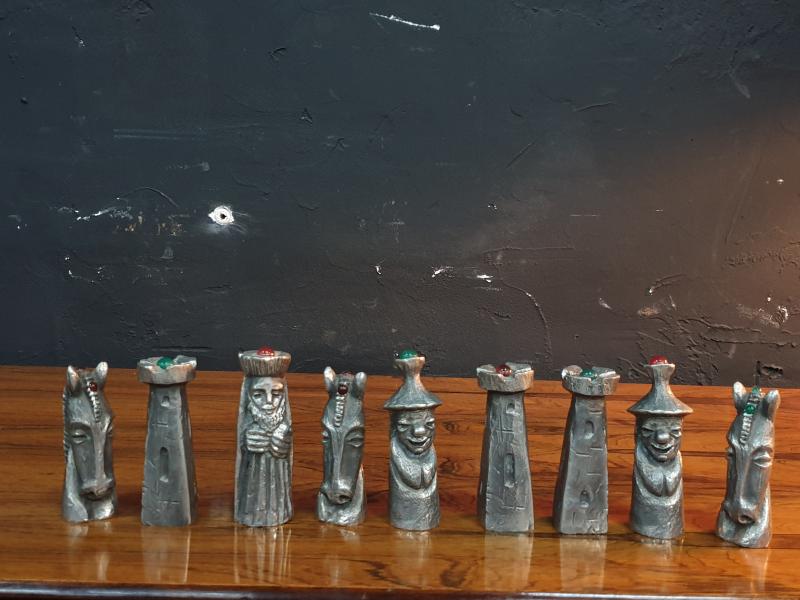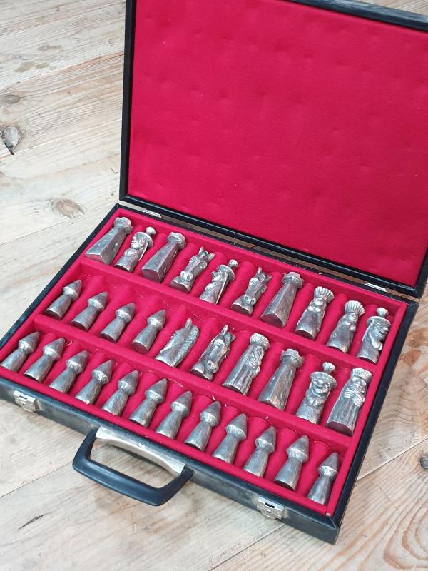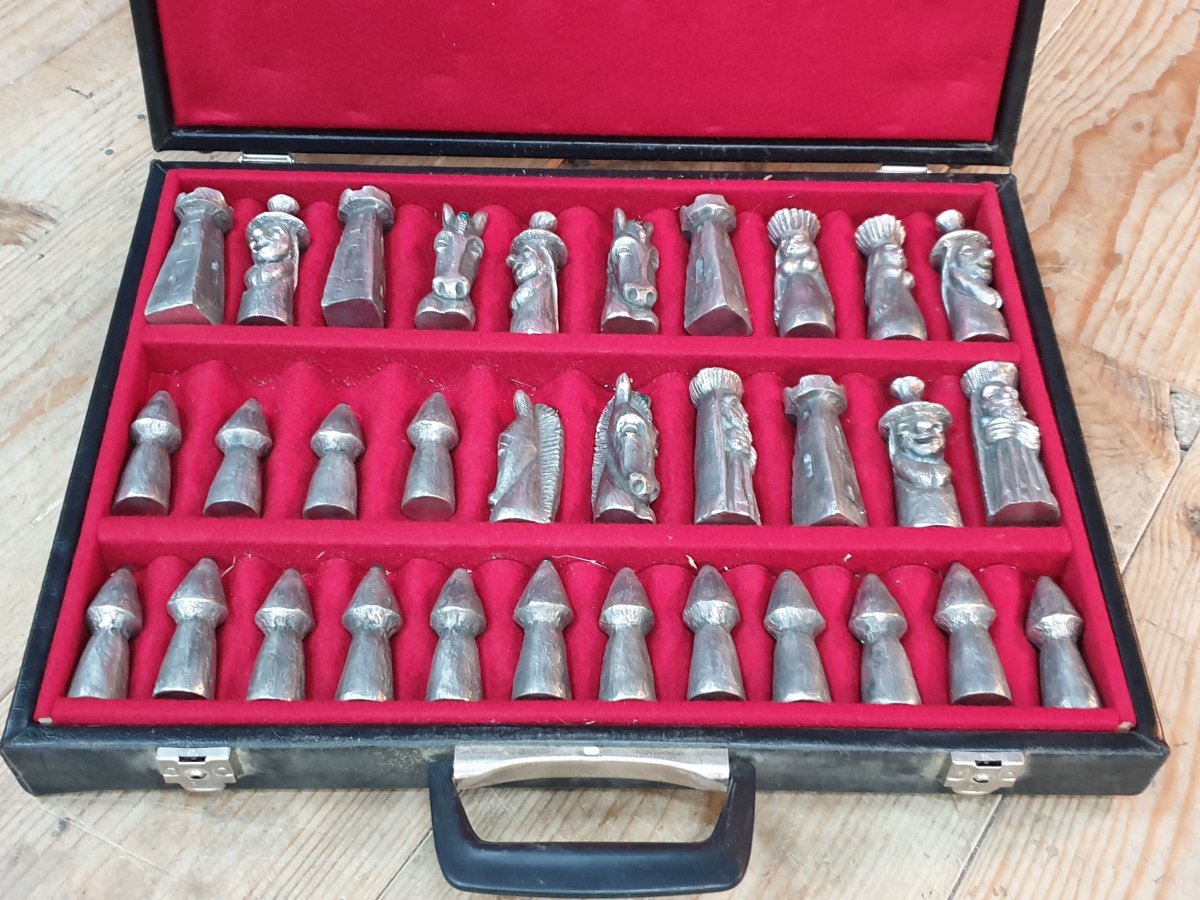 Jeu d'échecs stylisé complet en fonte d'aluminium dans la boîte