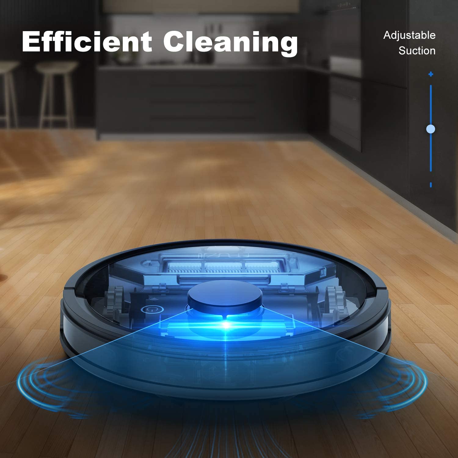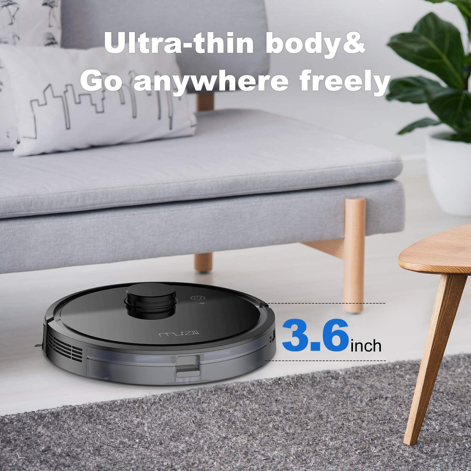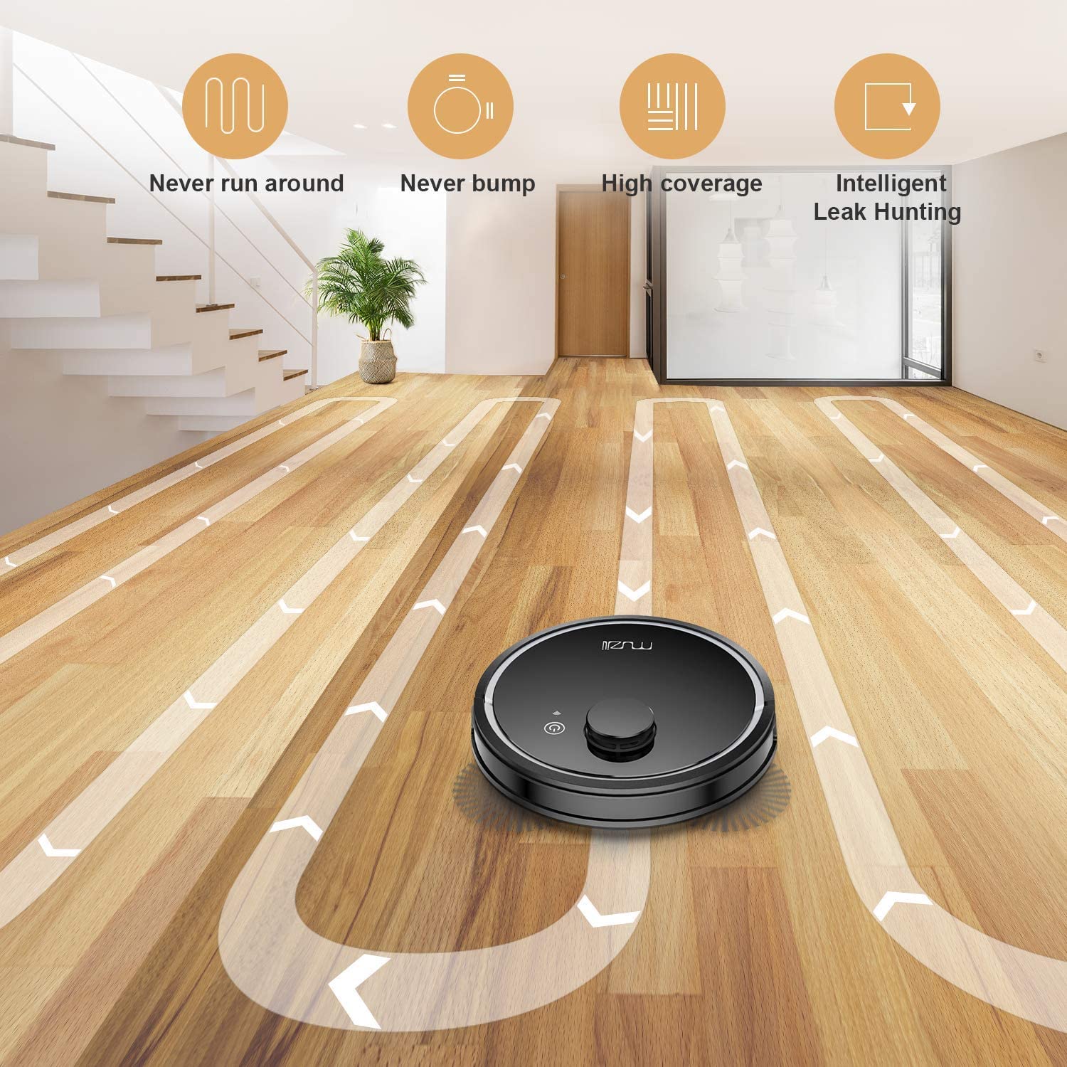 Aspirateur robot Muzili, aspirateur robot WiFi avec réservoir d’eau / Intelligent Navigated / 130 minutes d’autonomie / Contrôle APP / chargement automatique Convient pour nettoyer les sols et les tapis en poils d’animaux [classe énergétique A +++]