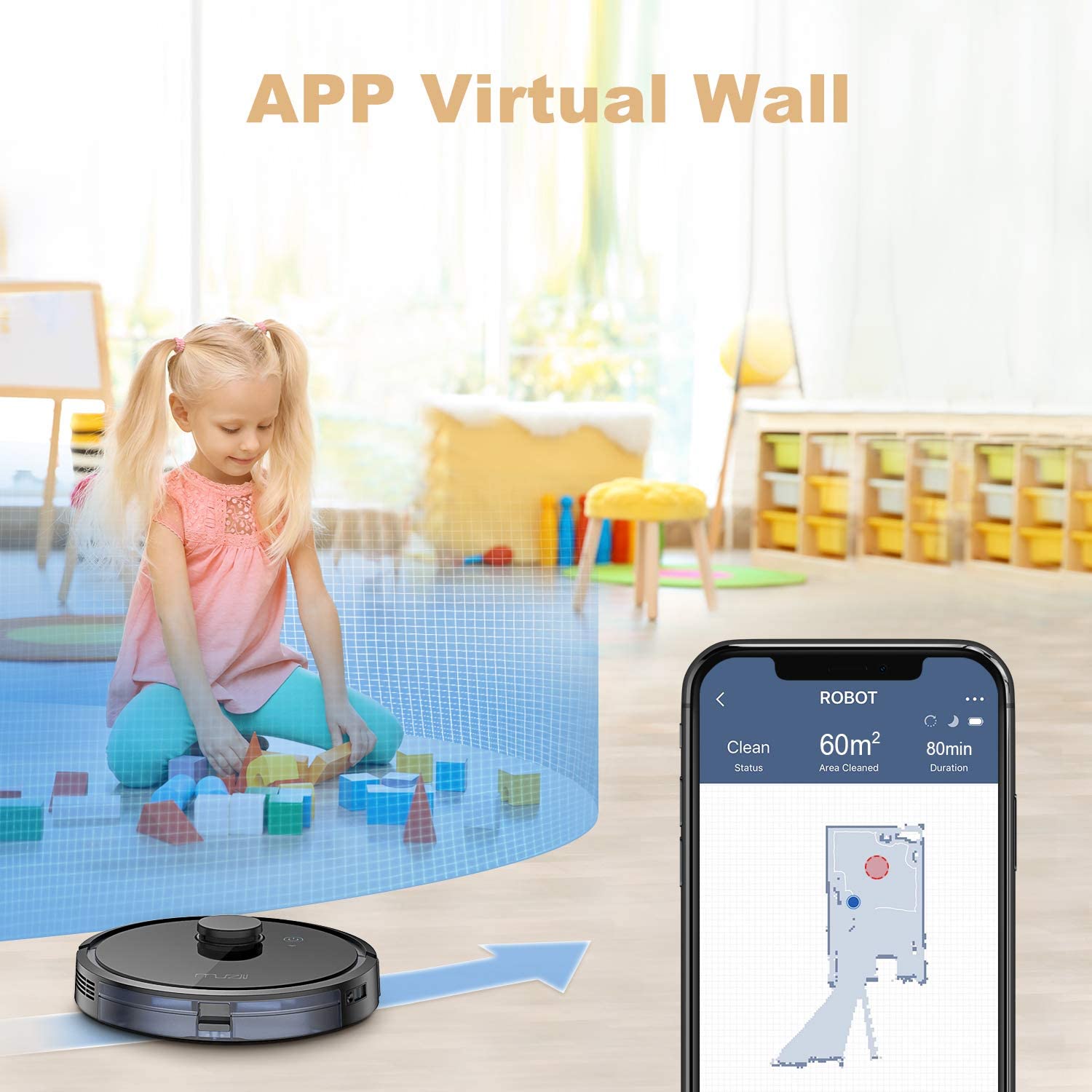 • [Dual-Positionierung mit Gyroskop & Lidar] Muzili V912 Saugroboter übernimmt doppelte Positionierungen mit LDS- und SLM-Navigation und kann die virtuelle Wand für die Bereichsauswahl, Unterteilung und benutzerdefinierte Reinigung einstellen. Die 4 * 4m rechteckige Abdeckung und die bogenförmige Reinigungswegplanung können Reinigungswiederholungen reduzieren, Zeit sparen und die Effizienz verbessern.